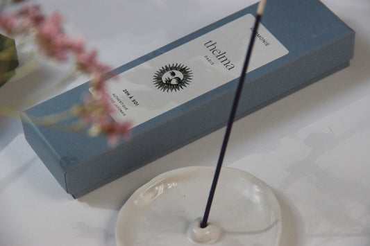Profitez des parfums de l'encens sans entêtement avec des bâtons à très faible émission de fumée. Thelma Paris ce sont aussi des soins biologiques, sans parfum, qui permettent de protéger votre peau et vos cheveux.